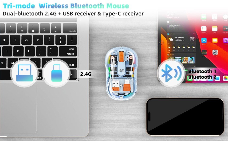 New Transparent housing Tri-mode Wireless Bluetooth Mouse